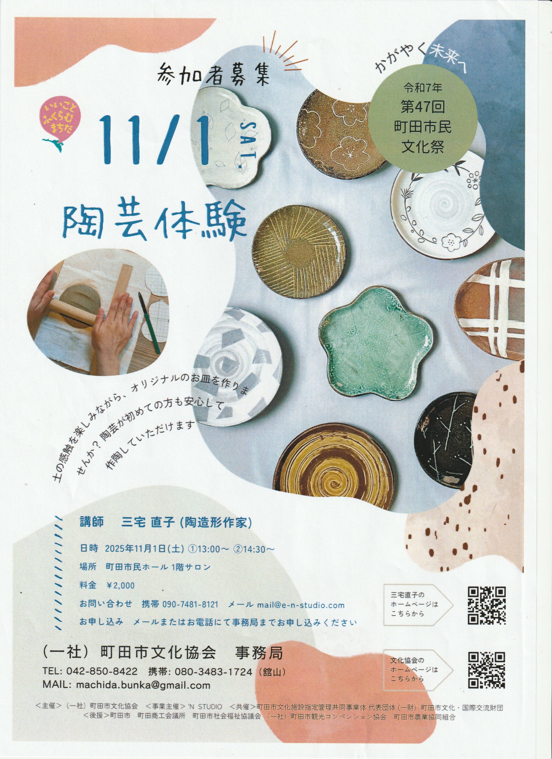 ■第47回町田市民文化祭「1日陶芸体験」参加者募集